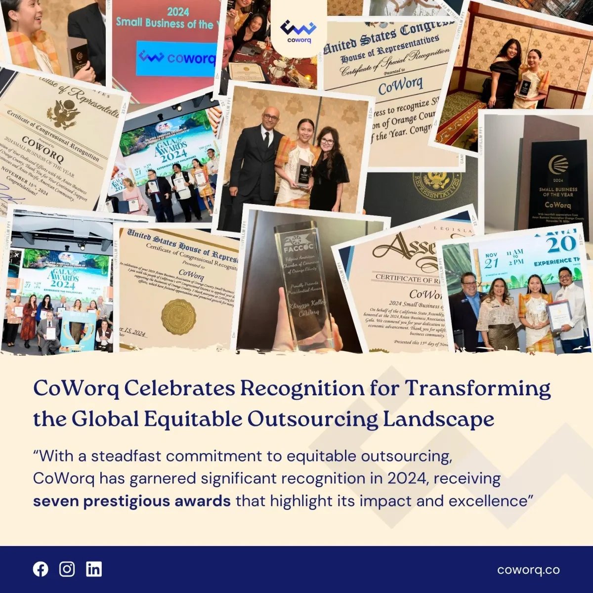 In 2024, Dream Team received multiple awards and certifications, including the prestigious Small Business of the Year award, highlighting its exemplary business practices, strong culture, and community impact. These honors underscore CoWorq’s resilience, leadership, and unwavering dedication to ethical outsourcing. They reflect the hard work of a team united by a vision: to build a thriving, inclusive community where technology bridges opportunities and every individual can succeed.